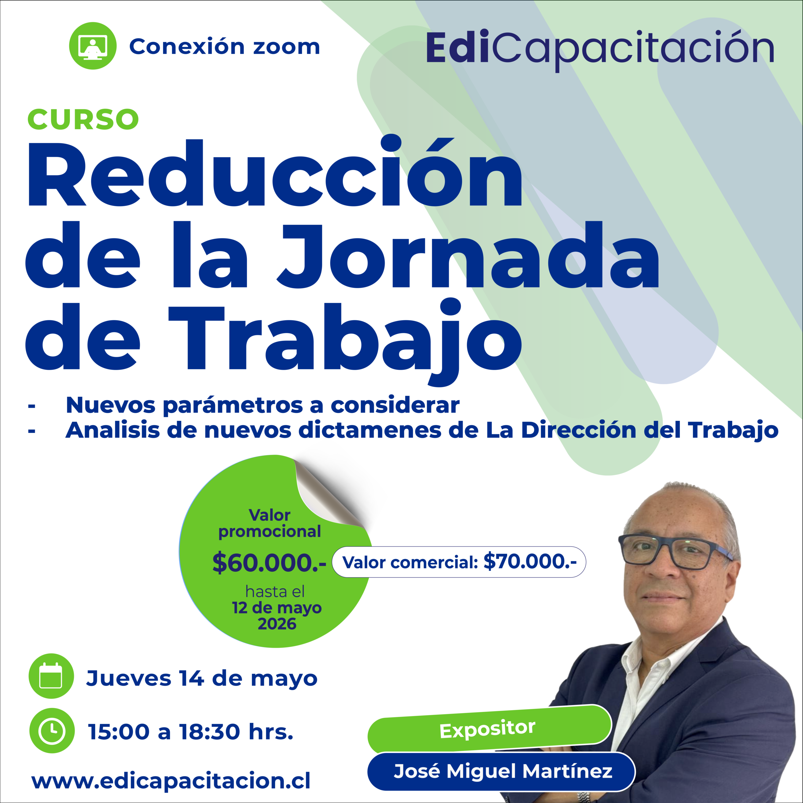 Al término del curso, los participantes estarán en condiciones de conocer en detalle, los nuevos límites de la jornada de trabajo, las fechas de su implementación, la forma de disminuirla, los trabajadores excluidos de la rebaja horaria y la modificación que regirá para los sistemas excepcionales distribución de la jornada de trabajo y descansos.